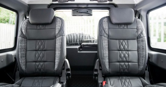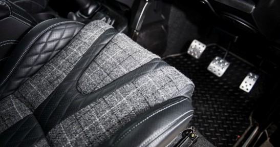 Jeszcze więcej dzieje się we wnętrzu, w którym zagościły sportowe fotele pokryte pikowaną skórą i kraciastym zamszem. Auto wyposażono też w system audio i klimatyzację, dzięki czemu kabina straciła swój spartański charakter.