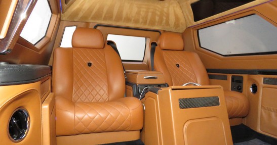 Na pokładzie znajdziemy luksusowe wyposażenie i wykończenie, a także system kamer, noktowizor, konsolę Playstation 4, ekrany multimediów, czy zapasowy zbiornik powietrza.