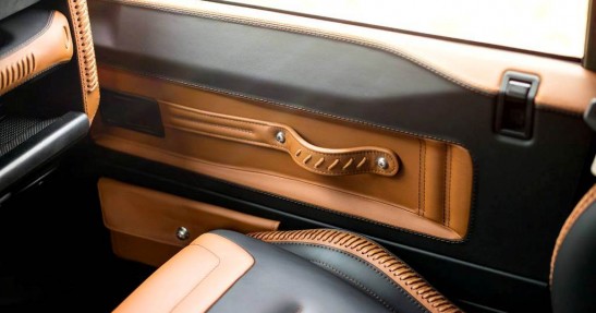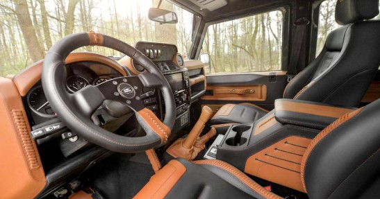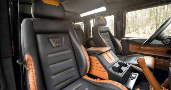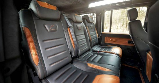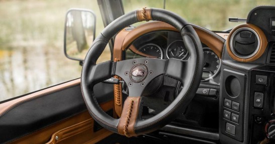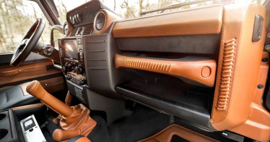 Specjaliści z Carlex Design zadbali o każdy szczegół obszywając kabinę Defendera różnymi odcieniami skóry. Ten szlachetny materiał pokrywa niemalże każdy element wnętrza Defendera.
