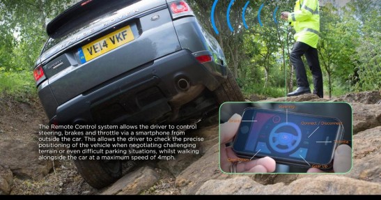 Do "przezroczystej" maski i słupków oraz szyby, któa jednocześnie stanowi wyświetlacz dołącza kolejne rozwiązanie, które dobrze sprawdzi się w terenie. To system remote control pozwalający zdalnie kontrolować Range Rovera Sport.