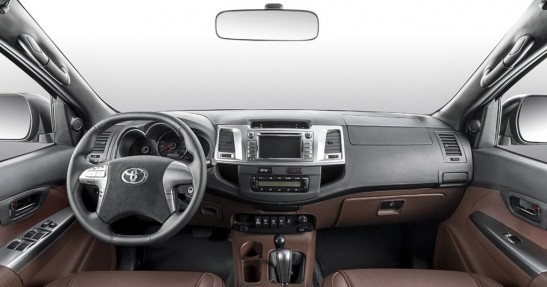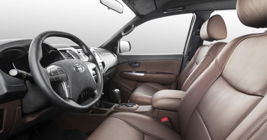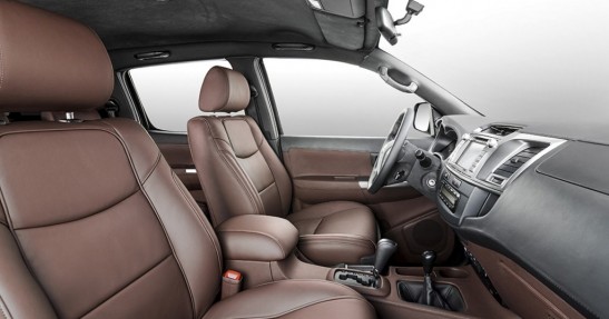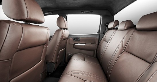I tak dość nudna kabina Hiluxa zmieniła się w luksusowy salon na kółkach. Topowe wyposażenie, alkantara i skóra dbają o odpowiedni klimat. Do G63 AMG nadal sporo brakuje, ale jest nieźle.